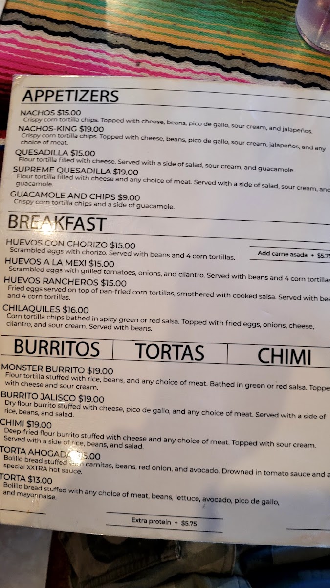 - Appetizers: Don't miss the Guacamole and Chips, perfect for sharing, or the loaded Nachos topped with your choice of meat for a flavor explosion.